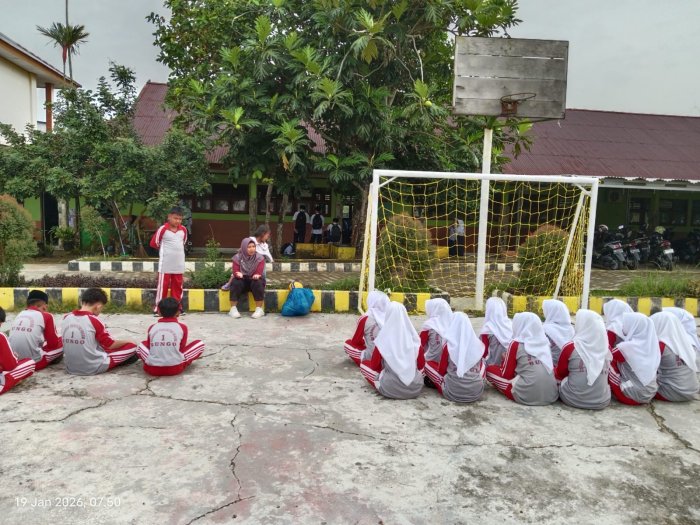Kegiatan pembelajaran diawali dengan pemberian arahan kepada siswa mengenai tujuan pembelajaran dan pentingnya memahami materi PJOK, baik secara teori maupun praktik. Fitra Hayati, S.Pd.,Gr., menjelaskan materi dengan bahasa yang mudah dipahami agar siswa dapat mengikuti kegiatan dengan baik dan tertib.