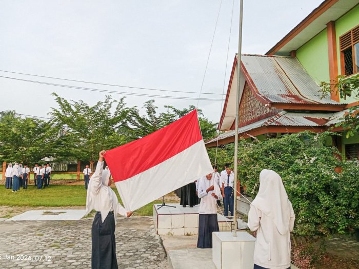 Suka Jaya (MTsN 1 Bungo) - Upacara bendera yang dilaksanakan pada hari ini 26/1 di MTsN 1 Bungo berlangsung dengan khidmat dan tertib. Kegiatan rutin yang diikuti oleh seluruh siswa, dewan guru, serta tenaga kependidikan ini berjalan dengan lancar sejak awal hingga akhir upacara.
