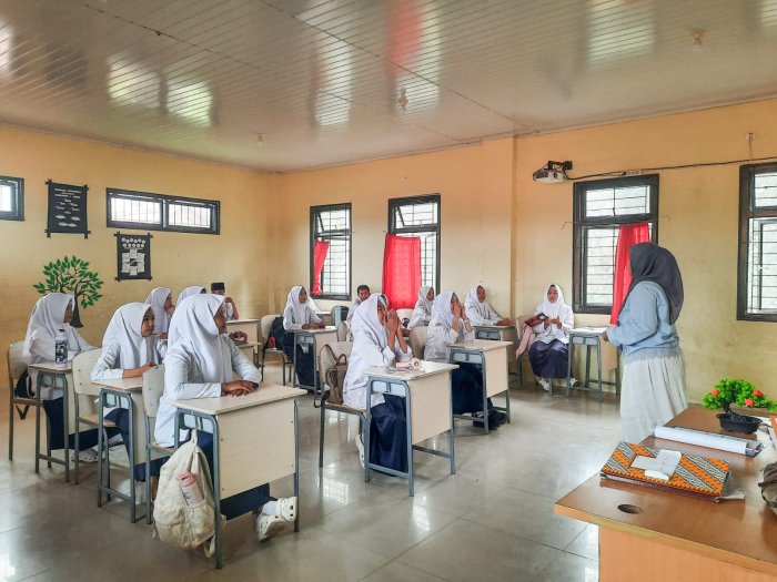 Peserta didik kelas IX tampak antusias mengikuti sosialisasi. Mereka mendapatkan gambaran mengenai pentingnya perencanaan belajar sejak dini, strategi menghadapi ujian, serta pemilihan jalur pendidikan yang sesuai dengan minat dan potensi masing-masing.