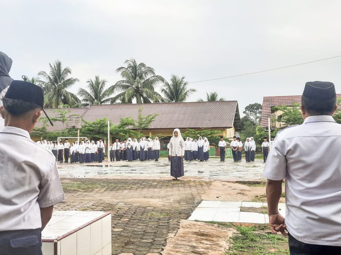 Suka Jaya (MTsN 1 Bungo) - MTsN 1 Bungo kembali melaksanakan kegiatan rutin Upacara Bendera yang berlangsung dengan khidmat dan tertib di halaman madrasah. Pada pelaksanaan upacara kali ini, Ibu Elfira Zuhria, S.Pd.I., selaku Wakil Kepala Madrasah Bidang Kurikulum, bertindak sebagai pembina upacara, sementara kelas 9D dipercaya sebagai petugas upacara. (2/2)