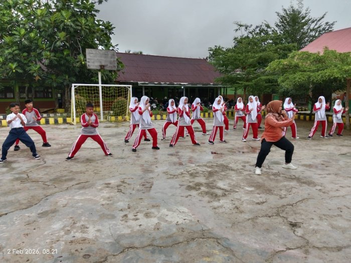 Dalam kegiatan tersebut, Fitra Hayati, S.Pd.,Gr., terlebih dahulu menjelaskan materi dasar pencak silat, mulai dari sikap awal, kuda-kuda, hingga beberapa gerakan dasar. Setelah pemaparan materi, siswa diajak langsung mempraktikkan gerakan-gerakan silat secara bertahap dengan bimbingan guru.