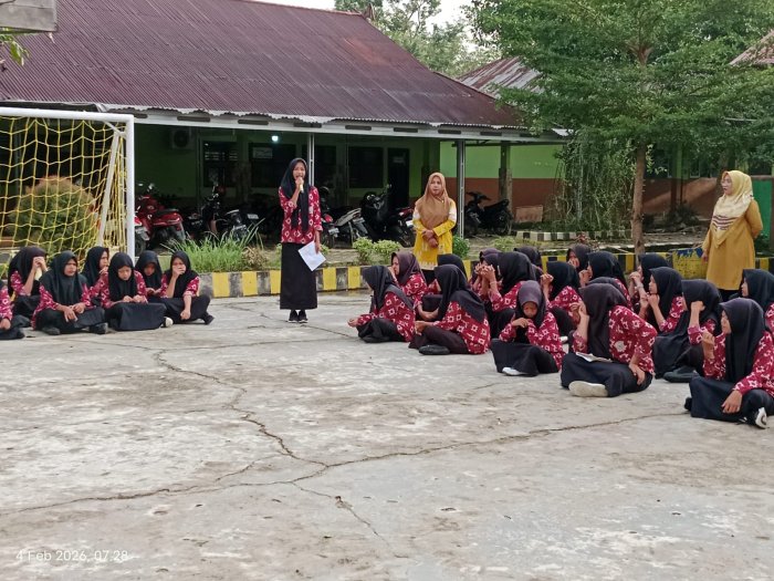 Suka Jaya (MTsN 1 Bungo) - MTsN 1 Bungo terus berkomitmen menanamkan nilai-nilai karakter dan keagamaan kepada peserta didik melalui kegiatan pembiasaan pagi. Pada Rabu pagi, GTK piket MTsN 1 Bungo aktif membimbing dan mendampingi siswa dalam pelaksanaan kegiatan muhadharah yang dilaksanakan sebelum proses pembelajaran dimulai. (4/2)