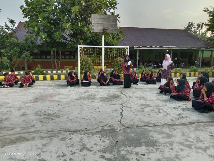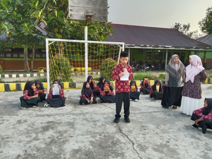 Kegiatan muhadaroh pagi ini dibimbing langsung oleh guru piket yang bertugas, yakni Ibu Syam Anggraini, S.Pd., Ibu Salbiyah, S.Ag., dan Bapak Ridwan, S.Pd.I. Dengan penuh kesabaran dan ketelatenan, para guru memberikan arahan, motivasi, serta evaluasi kepada siswa yang tampil agar terus meningkatkan kualitas penyampaian materi, intonasi, serta penguasaan panggung.
