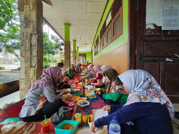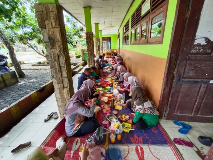 Sejak pagi, seluruh Guru dan Tenaga Kependidikan (GTK) telah mempersiapkan nasi beserta aneka lauk pauk terbaik dari rumah masing-masing. Hidangan yang tersaji mencerminkan semangat gotong royong dan kebersamaan, menghadirkan suasana kekeluargaan yang begitu terasa.