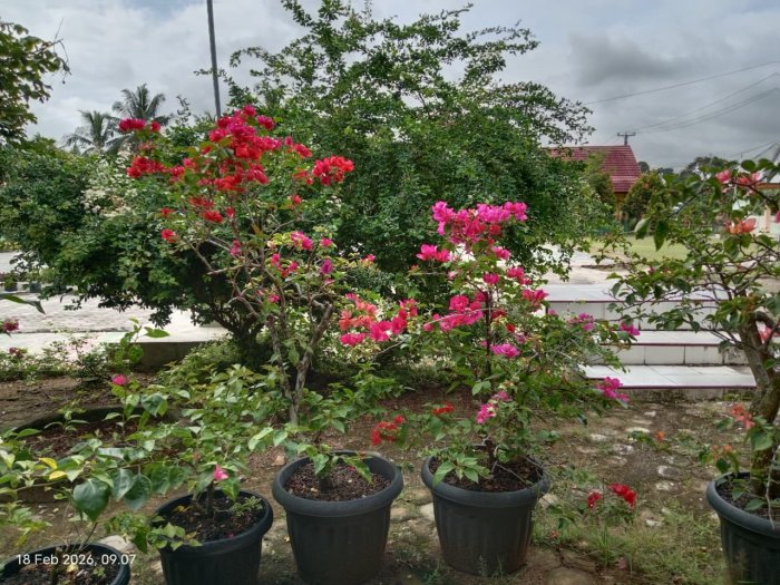 Suka Jaya (MTsN 1 Bungo) - Memanfaatkan momentum pembelajaran mandiri pada awal Ramadan, Tenaga Kependidikan MTsN 1 Bungo melakukan kegiatan penataan dan perawatan kembang di lingkungan madrasah. Kegiatan ini difokuskan pada area depan kantor dan sekitar ruang guru guna menciptakan suasana yang lebih asri, bersih, dan nyaman. (19/2)