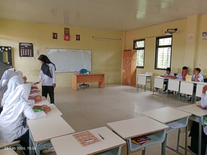 Suka Jaya (MTsN 1 Bungo) - Suasana penuh semangat dan antusiasme mewarnai hari pertama proses pembelajaran di MTsN 1 Bungo setelah satu minggu peserta didik melaksanakan belajar mandiri di rumah dalam rangka menyambut Bulan Suci Ramadan 1447 H. (23/2)