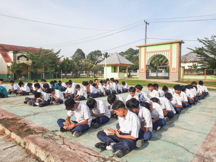Suka Jaya (MTsN 1 Bungo) - Suasana pagi di MTsN 1 Bungo dipenuhi lantunan ayat suci Al-Qur’an yang menggema dari setiap sudut kelas. Kegiatan tadarus Al-Qur’an yang rutin dilaksanakan selama bulan Ramadan kembali berlangsung dengan penuh kekhusyukan dan semangat dari seluruh peserta didik. (2/3)