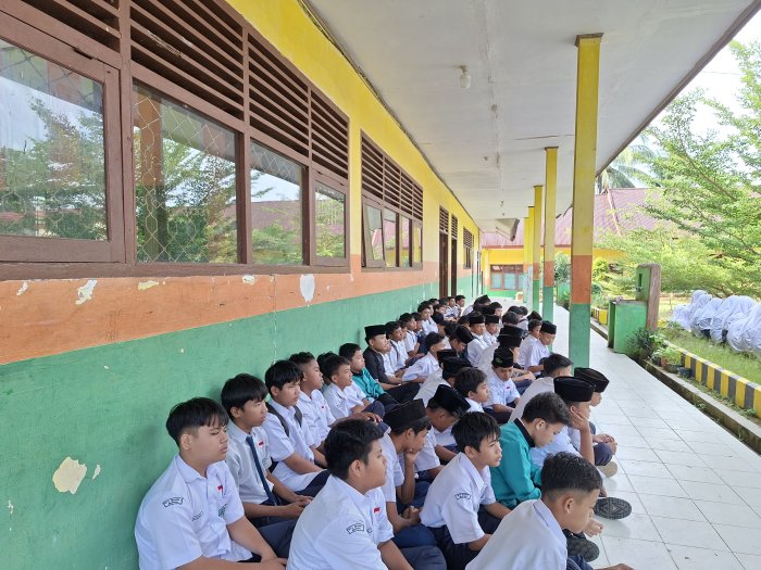 Suka Jaya (MTsN 1 Bungo) - Menyambut dimulainya kegiatan SMART Edu-Fest Ramadan, Kepala MTsN 1 Bungo, Bapak Khairul Fahmi, S.Pd.I., memberikan arahan langsung kepada panitia pelaksana terkait teknis kegiatan yang akan berlangsung selama beberapa hari ke depan. (2/3)