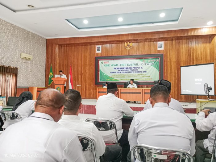 Kegiatan ini secara resmi dibuka oleh Kepala Kantor Kementerian Agama Kabupaten Bungo, Bapak H. Herman, S.Ag., M.H. Dalam arahannya, beliau menekankan pentingnya keseriusan setiap satuan kerja dalam melaksanakan penilaian mandiri serta memahami mekanisme pengisian lembar kerja evaluasi PMPZI secara tepat dan akuntabel.