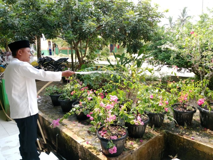 Dengan adanya perawatan yang dilakukan secara rutin, bunga-bunga di halaman depan kantor tetap tumbuh subur dan memperindah suasana sekolah. Lingkungan yang bersih, hijau, dan terawat diharapkan dapat memberikan kenyamanan bagi guru, pegawai, maupun siswa yang beraktivitas di MTsN 1 Bungo.
