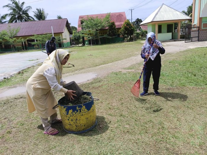 Kegiatan tersebut dilakukan sebagai bentuk persiapan menyambut aktivitas belajar mengajar setelah libur panjang Hari Raya. Seluruh GTK tampak kompak dan penuh semangat membersihkan berbagai sudut madrasah, mulai dari halaman, ruang kelas, taman, hingga fasilitas umum lainnya.