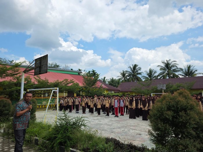 Suka Jaya (MTsN 1 Bungo) - MTsN 1 Bungo kembali menunjukkan komitmennya dalam membangun budaya kebersamaan dan kepedulian lingkungan melalui rencana pelaksanaan kegiatan goro akbar yang dijadwalkan berlangsung pada Sabtu mendatang. Dalam rangka menyukseskan kegiatan tersebut, Wakil Kepala Madrasah Bidang Kesiswaan, Bapak Firdaus Roni, S.Pd.I., memberikan arahan langsung kepada seluruh peserta didik. (2/4)