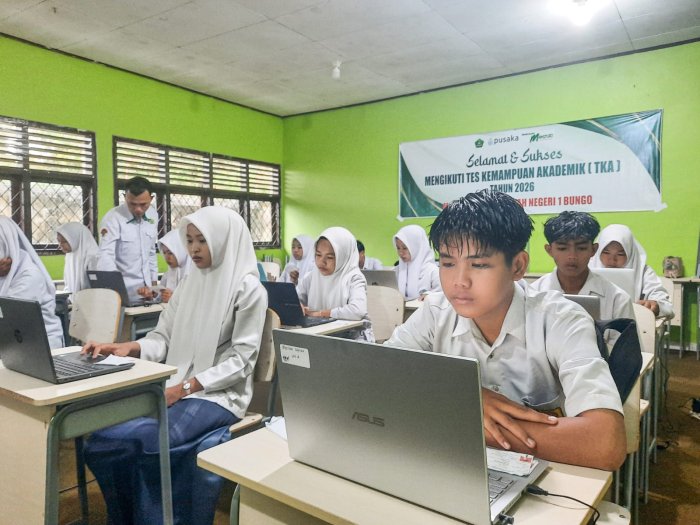 Suka Jaya ( MTsN 1 Bungo ) - Pelaksanaan Ujian Tes Kompetensi Akademik (TKA) hari kedua di MTsN 1 Bungo berlangsung dengan lancar tanpa hambatan berarti. Kegiatan yang dilaksanakan pada hari ini terbagi dalam tiga sesi, mulai dari sesi 1 hingga sesi 3, dan seluruhnya berjalan tertib serta sesuai dengan jadwal yang telah ditentukan.(7/4)
